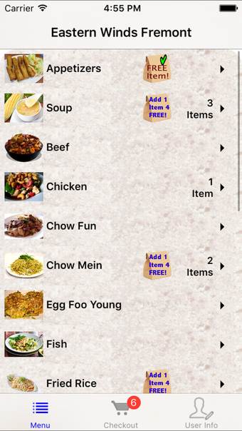 De app biedt ook een beloningssysteem; voor elke $100 aan bestellingen ontvangen klanten een gratis menu-item bij hun volgende bestelling. Dit maakt het aantrekkelijk voor frequente bezoekers. De betalingsverwerking wordt afgehandeld door PayPal, wat zorgt voor veiligheid en betrouwbaarheid. Kortom, Fremont Eastern Winds is een handige tool voor het bestellen van maaltijden met een gebruiksvriendelijke interface en aantrekkelijke voordelen.